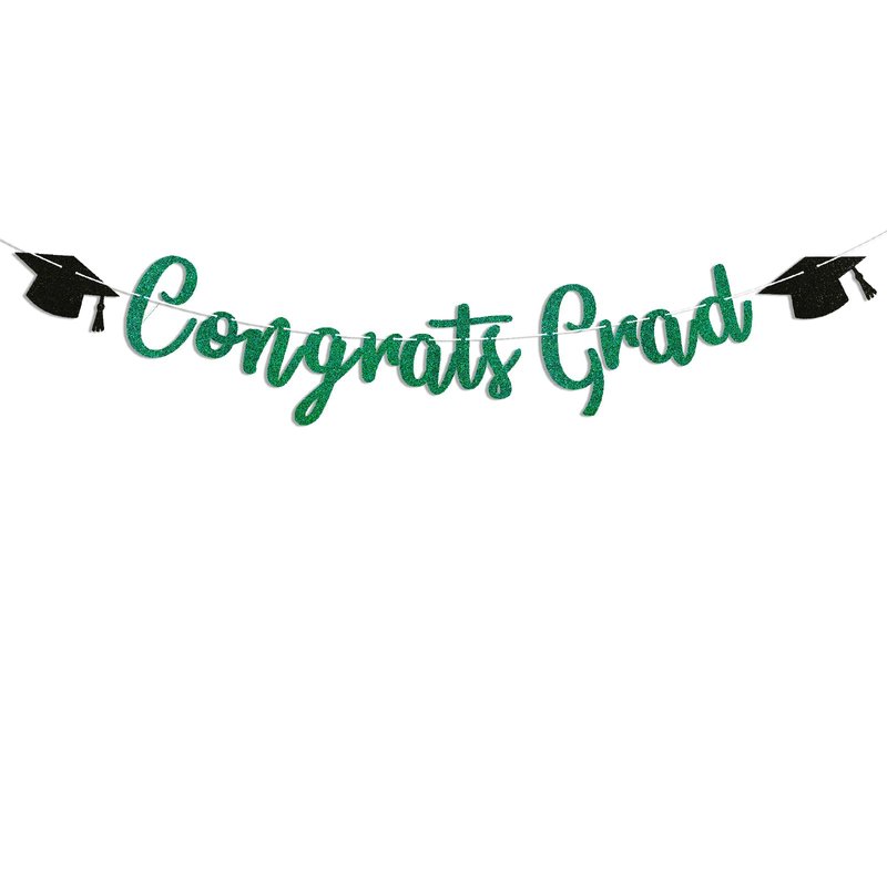 - ♥️ "Congrats Grad" Banner - 2024 Graduation Party Decorations in Glitter Green