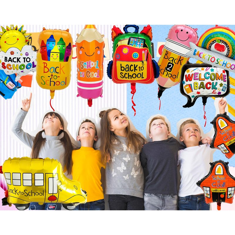 - New Design- 2024 New design in patterns, paired with bright colors, our welcome back to school balloons are themed around the school season, featuring cartoon school buses, schoolbag, pencils, rainbow, etc, cute and vivid.