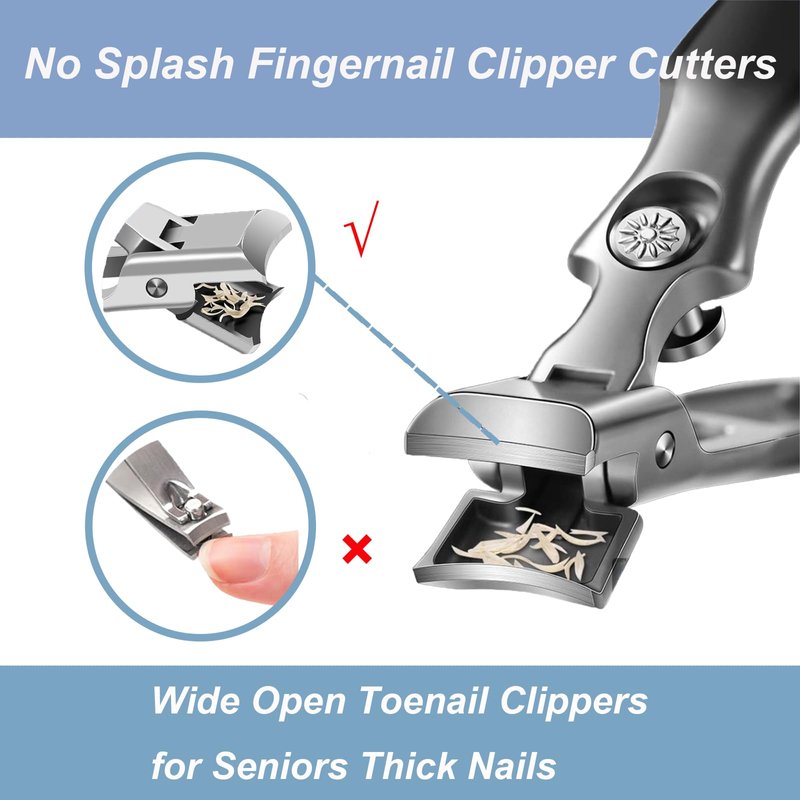 - [ Innovative Anti-Splashing Design ]: No Splash Fingernail Clipper Cutters with nails catcher, which can automatically collect nails. You don't need to worry about nail scraps splashing everywhere when you use it on your bed or sofa which would keep your house clean after cutting nails.