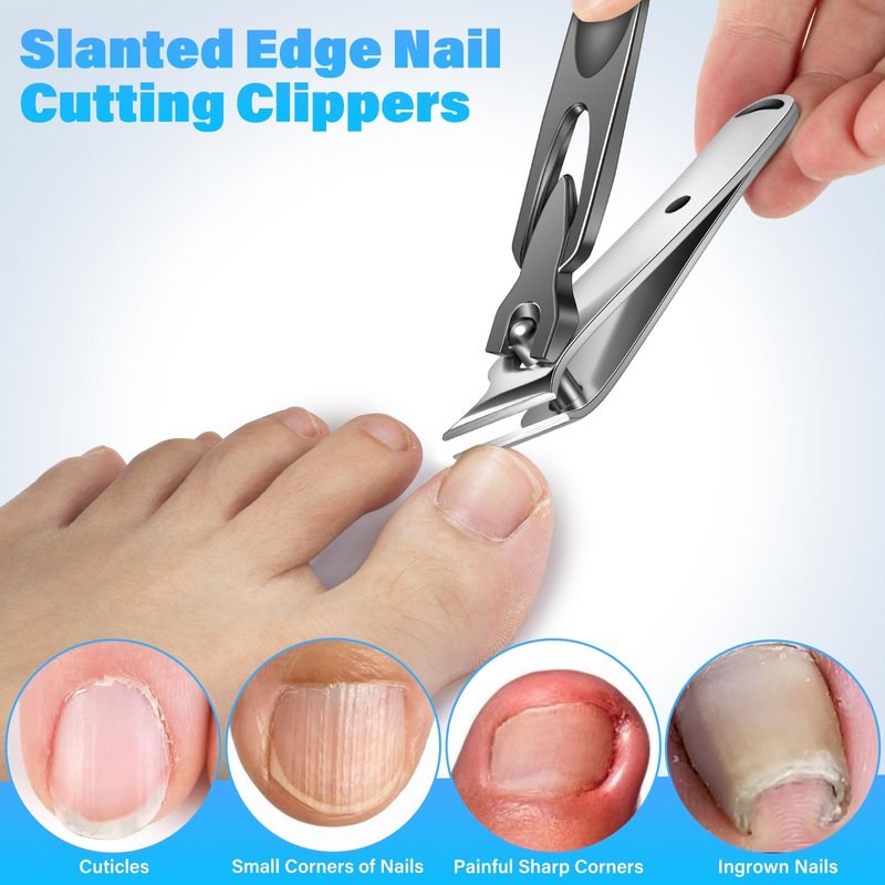 - 【Ingrown Toenail Clippers】- Adopting a newly upgraded slanted curved blade, the curvature of our toe nail clippers is designed according to the natural nail shape, perfectly fitting the nail curvature. The tip accurately trims ingrown toenails, painful sharp corners, small corners of nails, cuticles, and flaking skin, ensuring a smooth and efficient trimming process and avoiding injuries while cutting nails.