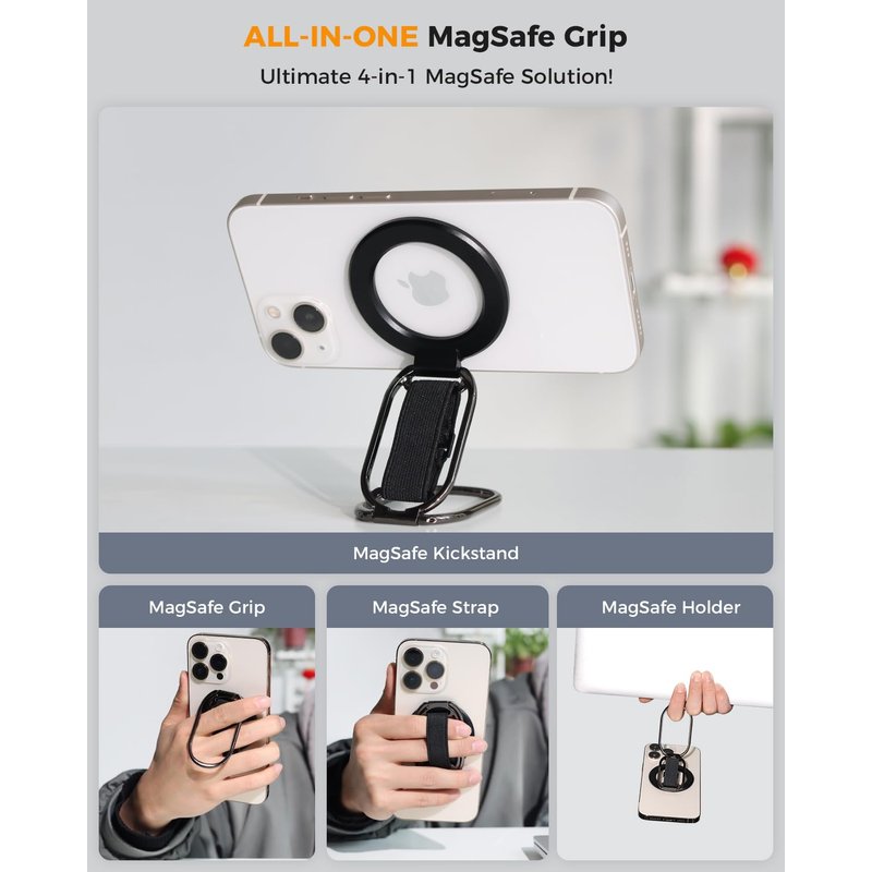 [2024 Newest] SUPERONE for MagSafe Phone Grip for MagSafe Kickstand Compatible with MagSafe Finger Loop, 4-in-1 Phone Ring Holder Strap for MagSafe iPhone 16/15/14/13/12 Series