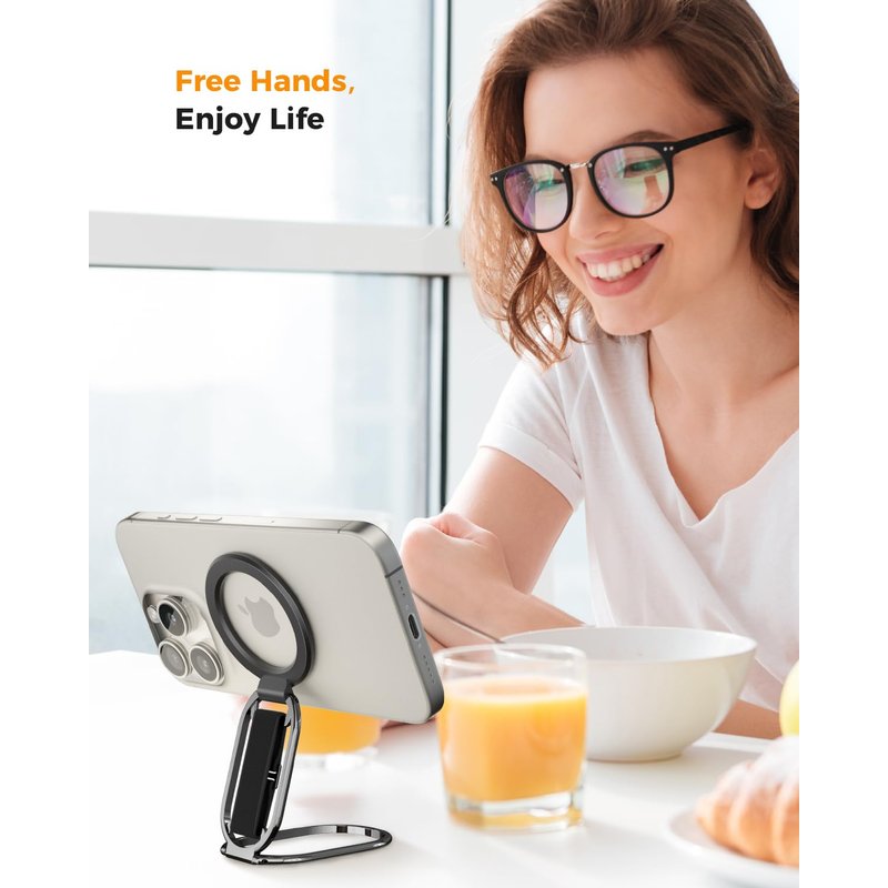 - [๐ ๐๐น๐๐ถ-๐ฉ๐ถ๐ฒ๐ ๐ฆ๐๐ฎ๐ป๐ฑ] The iphone magsafe kickstand features a multi-angle adjustable kickstand that rotates 360ยฐ, with dual joints flipping 280ยฐ and 360ยฐ, tested to withstand 50,000 folds without getting loose. It provides hands-free viewing in both portrait and landscape modes. Use it as a magnetic phone stand to prop up your phone for watching videos, movies, YouTube, TikTok, taking selfies, or FaceTime someone.
