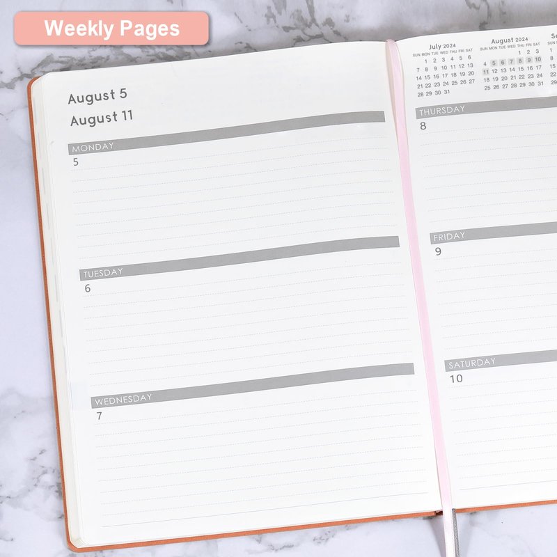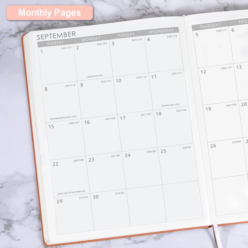 - GUIDE EACH WEEK - Weekly spread include space to write your daily schedule, detail appointments and keep track of all days clearly with the weekly view. You can see 7 days Start with Monday to Sunday in the couple pages. Holidays can help you remember important days, last and next months calendar help recall and plan past and future plans.
