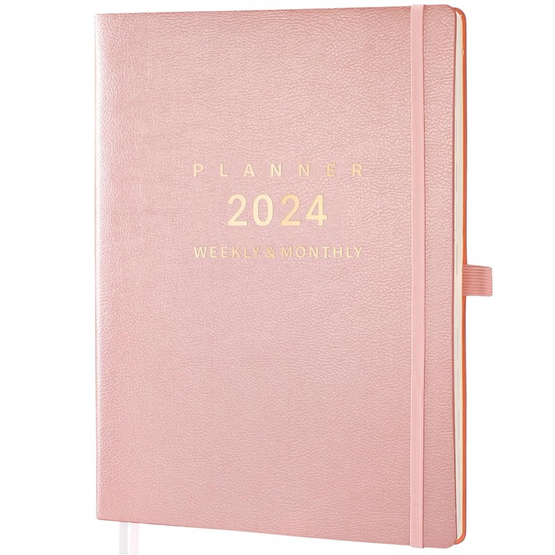 2024 Planner - Jan 2024 - Dec 2024, Weekly & Monthly Planner 2024, 8.5" x 11", Pen Holder, Calendar Stickers, Pocket, 25 Notes Pages, Faux Leather Cover, 2 Book Marks, A4 Premium Paper - Rose Gold