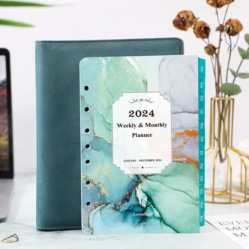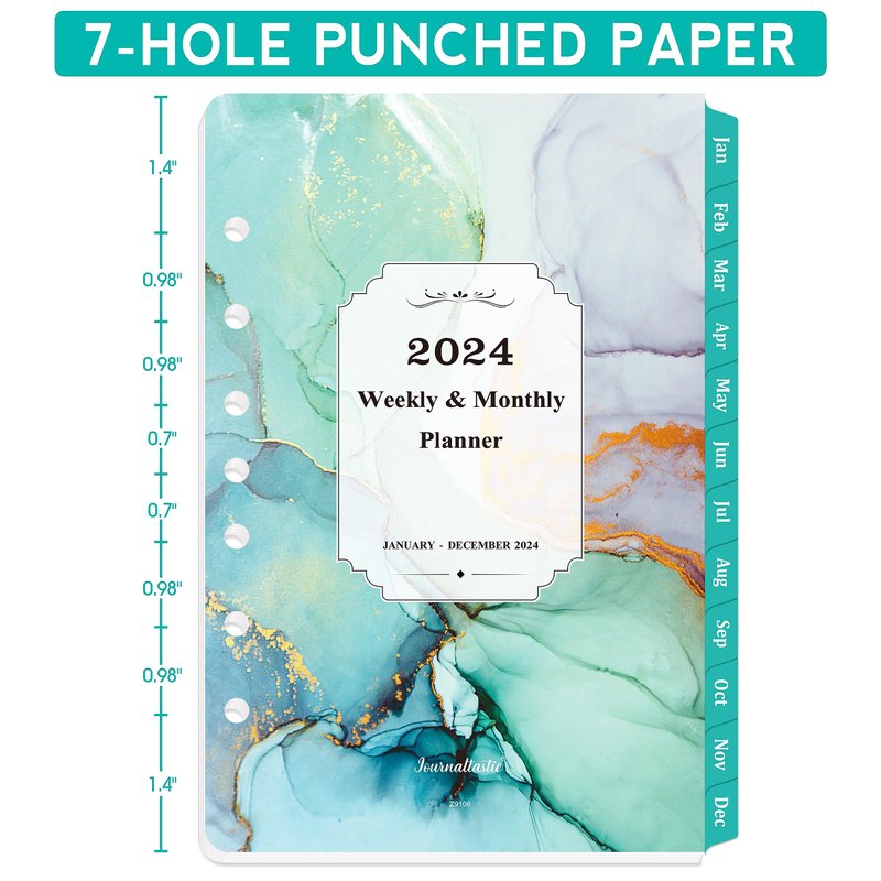 2024 Planner Refills - Planner Refills 2024 from Jan 2024 - Dec 2024, A5 Planner Inserts 2024, 5.5 x 8.5 inch, 7 Holes, 2024 Weekly & Monthly Planner Refills, A5 Planner Refills - Green
