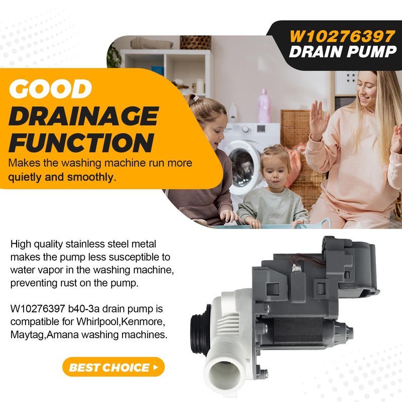 - 【FIT WASHER DRAIN PUMP MODELS】B40-3A washing machine drain pump is designed to work with a wide range of brands like: Whirlpool,Kenmore,Maytag, Amana,Roper,Crosley,Inglis and compatible with models: 11020022010 11020022011 11021102010 11021102011 11021112010 1CWTW4740YQ0 1CWTW4840YW0 7EWTW1300YM0 7EWTW1409YM0 ATW4675YQ0 ATW4675YQ1 CAE2743BQ0 CAE2763BQ0 ITW4600YQ0 ITW4700YQ0 MVW18CSAWW0 MVW18PDAWW0 MVWC200XW0 MVWC200XW1 NTW4501XQ0 NTW4600YQ0 NTW4600YQ1 NTW4700YQ0 WTW4700YQ0 WTW4750YQ0...Please check the compatibility with your previous part and model of appliance before ordering or Q us if not sure whether suitable for