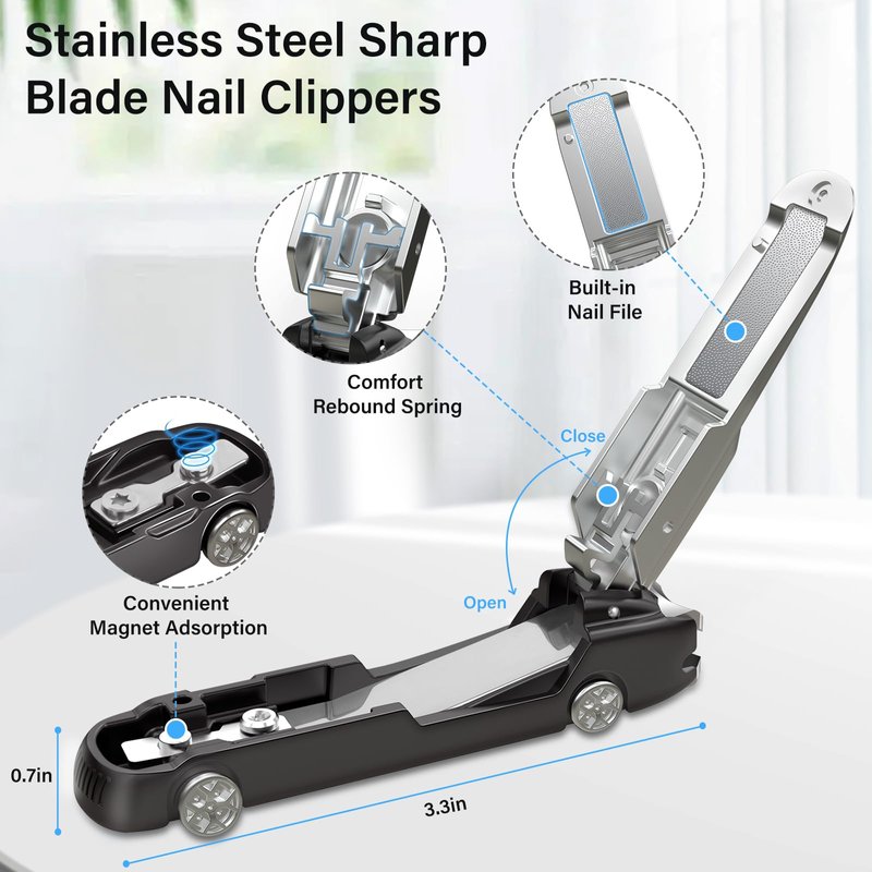 2024 Upgrade Nail Clippers with Catcher - Cool Car Model No Splash Toenail Clippers, Self Collecting Fingernail & Toe Nail Clipper for Thick Nails, Sharp Blade Birthday Gifts for Men