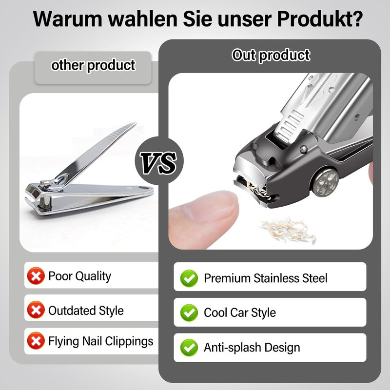 - New Anti-splash Design - Nail clippings flying everywhere? Never again! This large mess-free nail clipper adopts anti-splash design that prevents nail clippings from splashing, don't need to worry about nail clippings splashing on the floor, this men's nail clipper makes your nail care routine less messy.