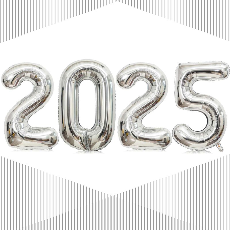 - Package Included: Big 16 INCH Silver Foil 2025 Foil Numbers Balloons,1 Inflatable Straw,1 Ribbon