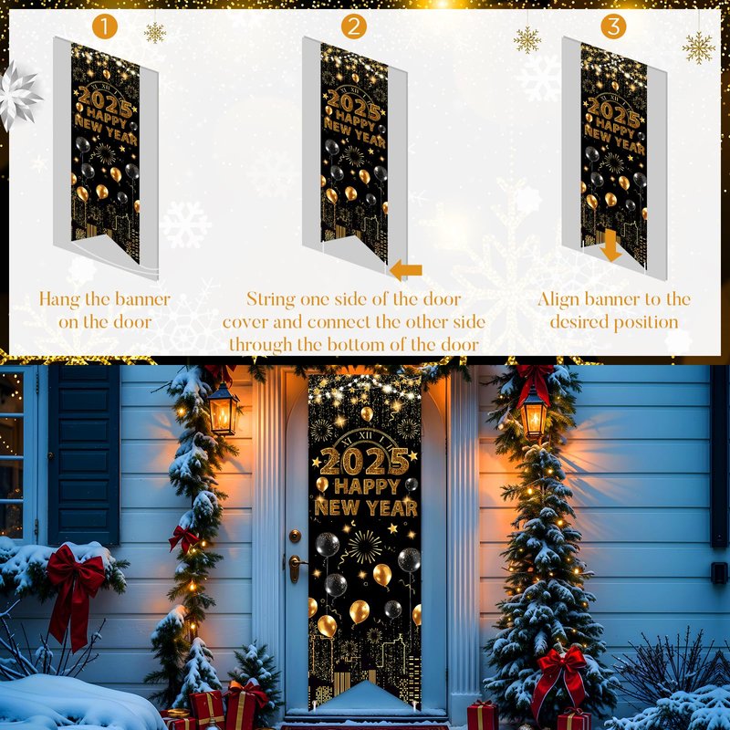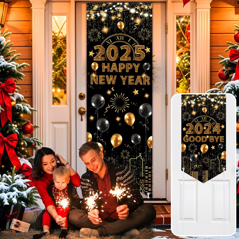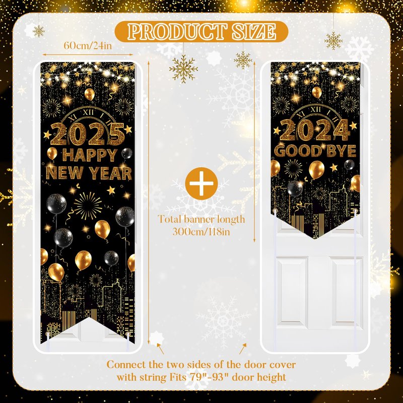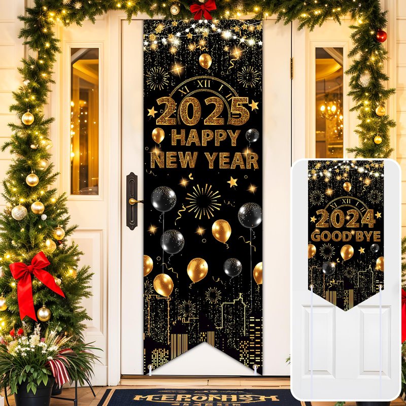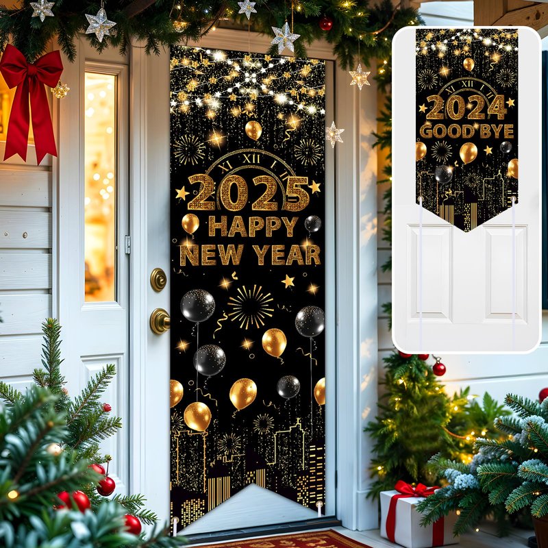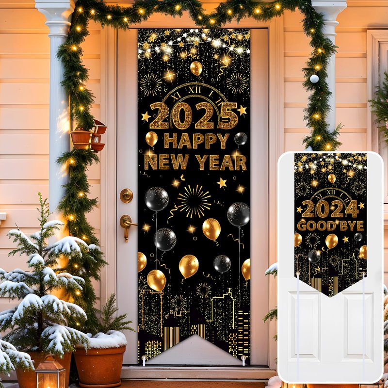 - 【Festive New Year Eve Party Supplies 2025】The Happy New Year 2025 door banner is a nice oversized cloth one, not the cheap plastic throwaway one. The color black and gold is a great combination for the New Year 2025 decorations. The graphic is beautiful and it is the perfect addition to the decorations