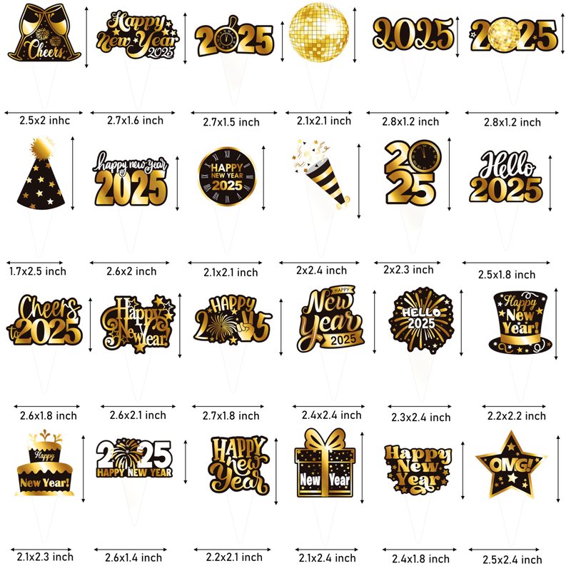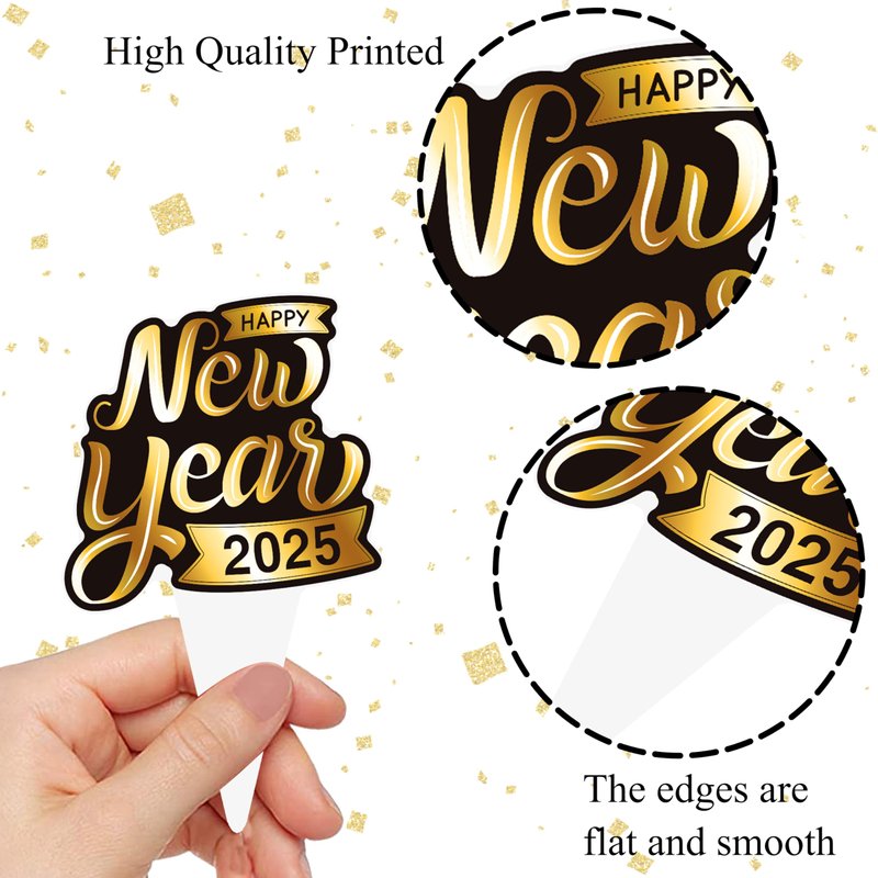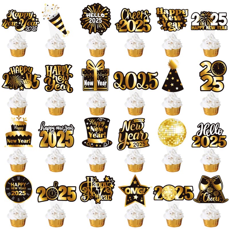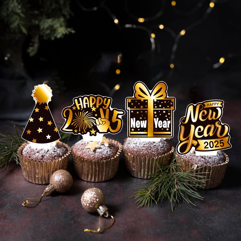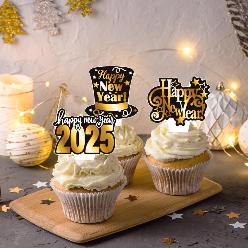 - 【Happy new year party decoration 2025】Our New Year's decorations are printed on both sides and do not require assembly, pre-assembled design makes it easy to decorate your party. New Year cupcake toppers use sturdy cardstock to ensure they stick firmly into your cupcake and cake.