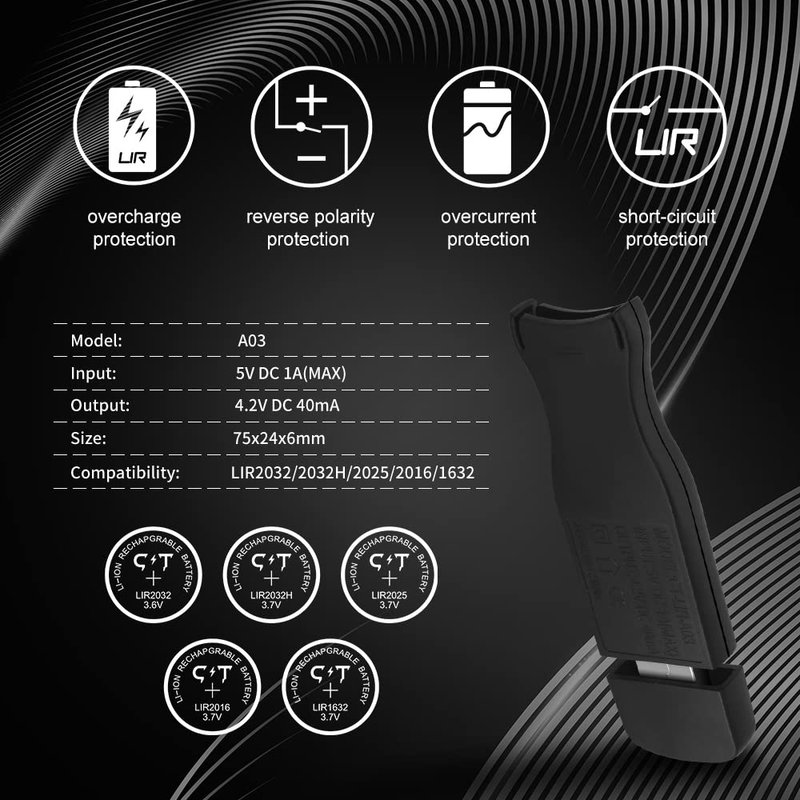 - ⚡⚡MULTI BATTERY CHARGER! Widely charge different types of rechargeable button cell batteries includes LIR2032, LIR2016, LIR2025, LIR1632.