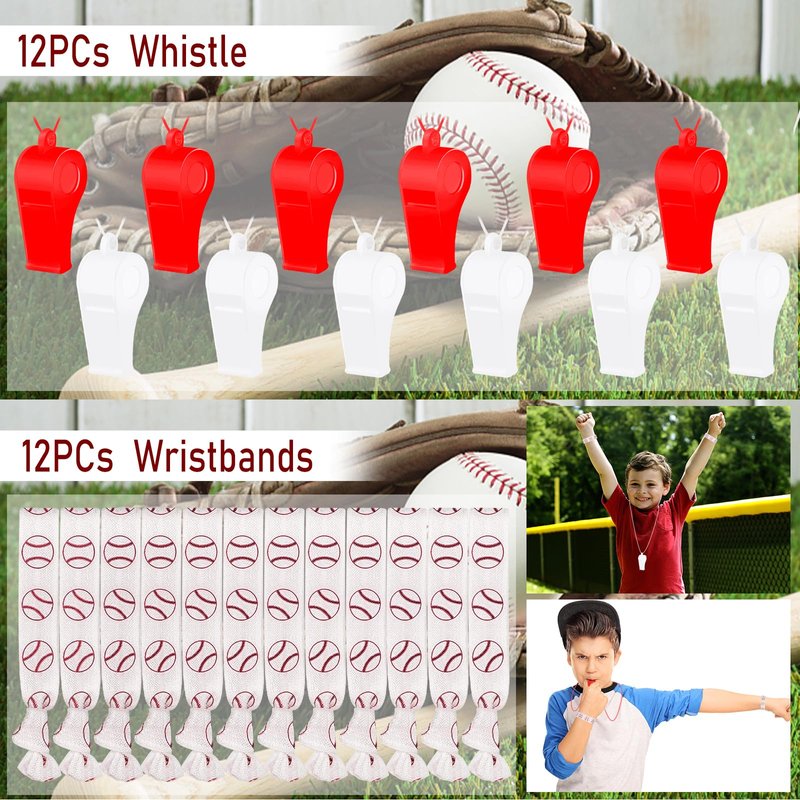 - Package Included - Baseball set has 10 different styles of Baseball party favors, including 12Pcs Baseball gift bags, 12Pcs Baseball whistles, 12Pcs Baseball slap bracelets, 12Pcs Baseball foam balls, 12Pcs Baseball hair Ties, 12Pcs Baseball bracelets, 12Pcs Baseball erasers, 12Pcs Baseball keychains, 12Pcs Baseball temporary tattoos, 50 Baseball stickers, a large number to meet your different party needs.
