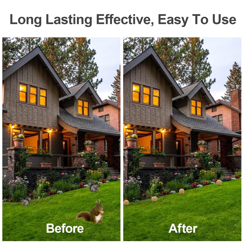 - Easy To Use- Simply place the squirrels deterrent in the garden plants you want to repel squirrel and chipmunk, such as near bulbs, tree bark, Pumpkins and fruit trees or indoors the squirrels might pass-by. Using one or more depending on the coverage needed.The effective area up to 120 Square feet.