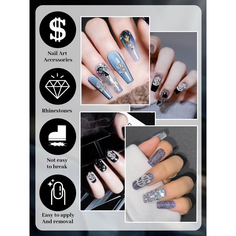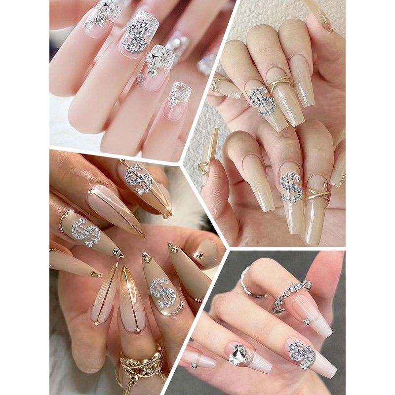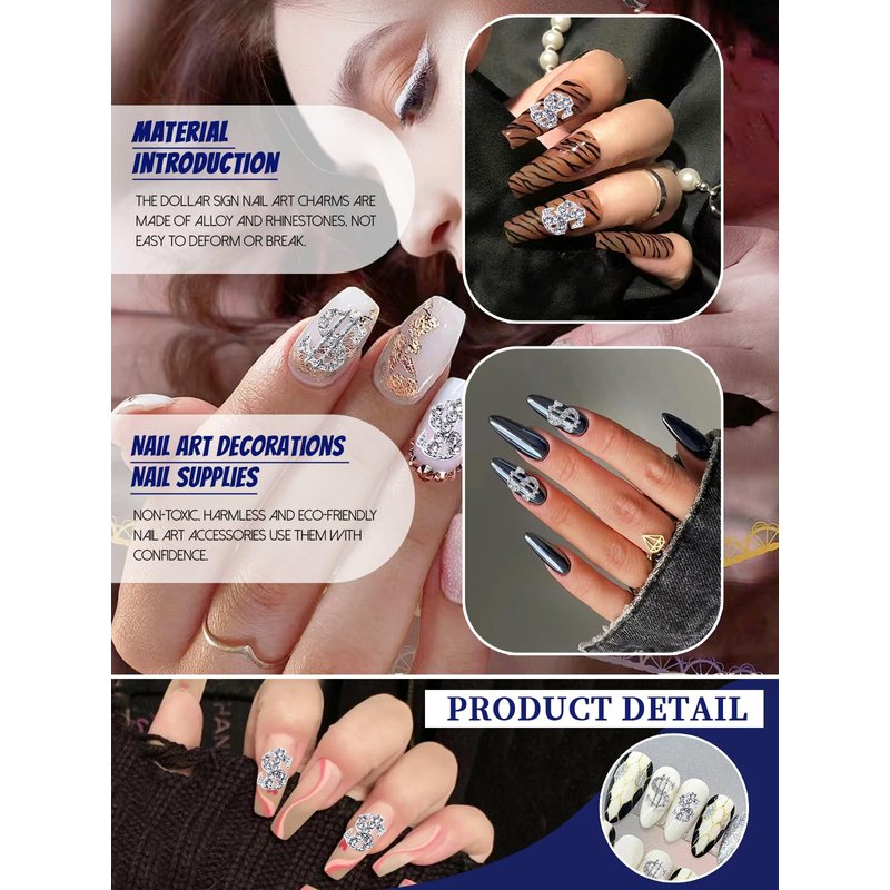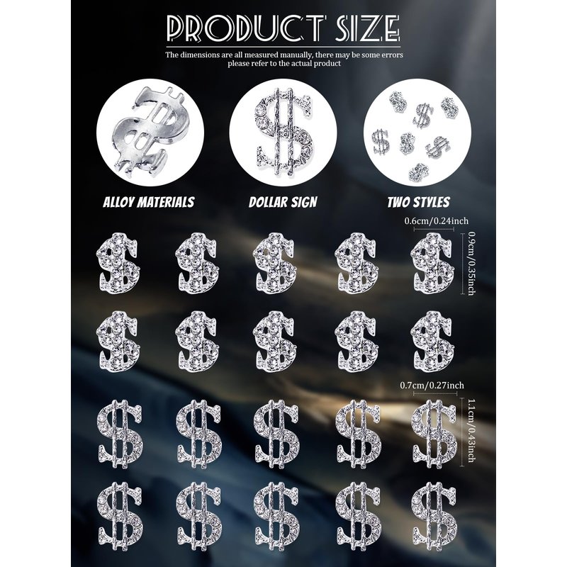 - 💰【Unique Design】These two styles nail charms feature a dollar sign design, plus the embellishment of silver rhinestones, making your nails look more delicate and dazzling.