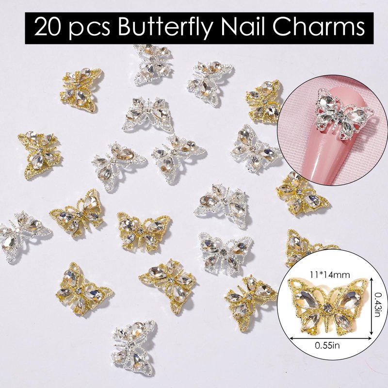 - 【Gold And Silver Nail Charms】The package contains 20pcs gold and silver butterfly nail jewelry, 3D nail rhinestones make your nail to be charming. Enough quantities meets your daily nail design needs.