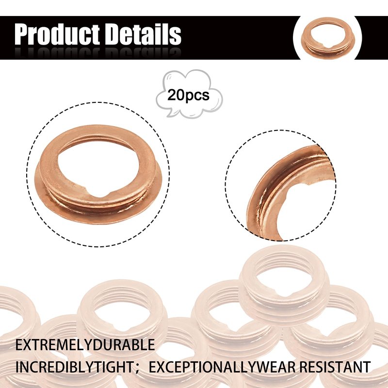 20PCS M12 Copper Oil Drain Plug Gaskets Crush Washer Automotive Parts Replacement for Ford Infiniti Nissan 11026-JA00A