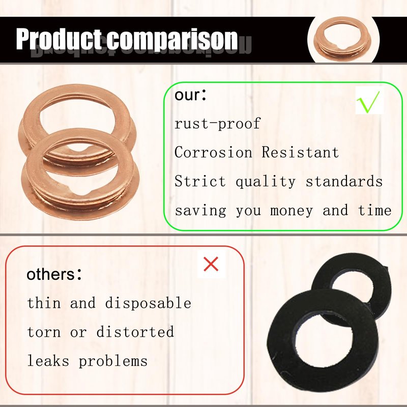 - High Quality: Made of high quality copper ore as material, The washer's surface are smooth creating a tight seal.