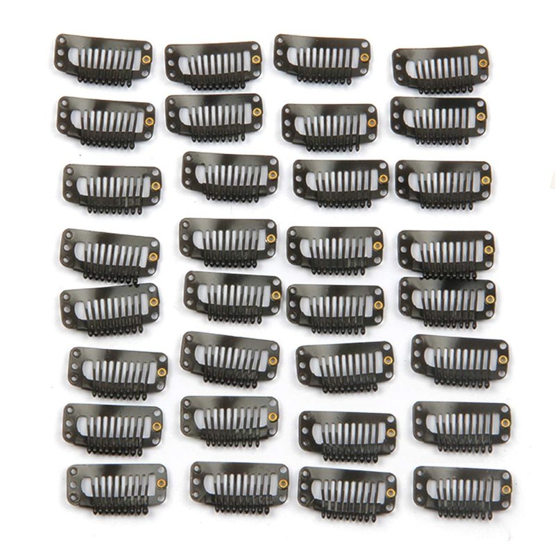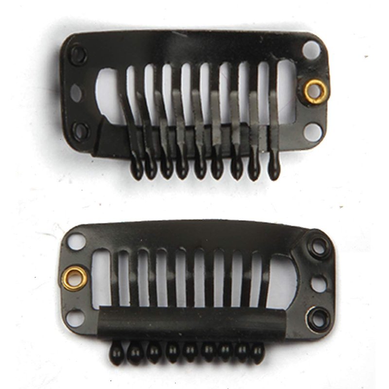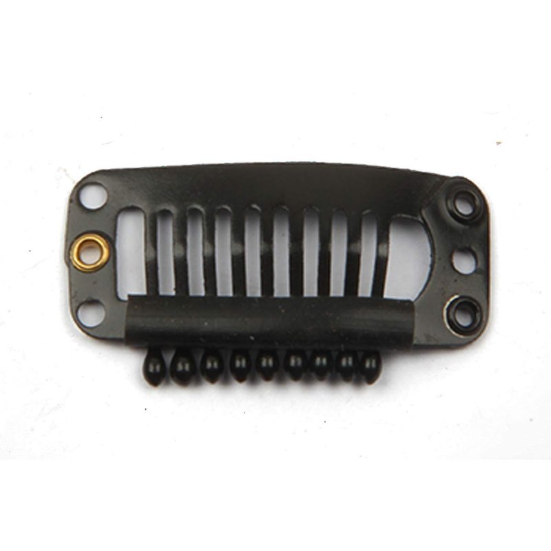 20pcs Metal Snap Clips for Hair Extensions DIY Clip in on Hair Extension Wigs 9 Teeth 32mm 1.2g/pc Black Brown Beige Color (Black)