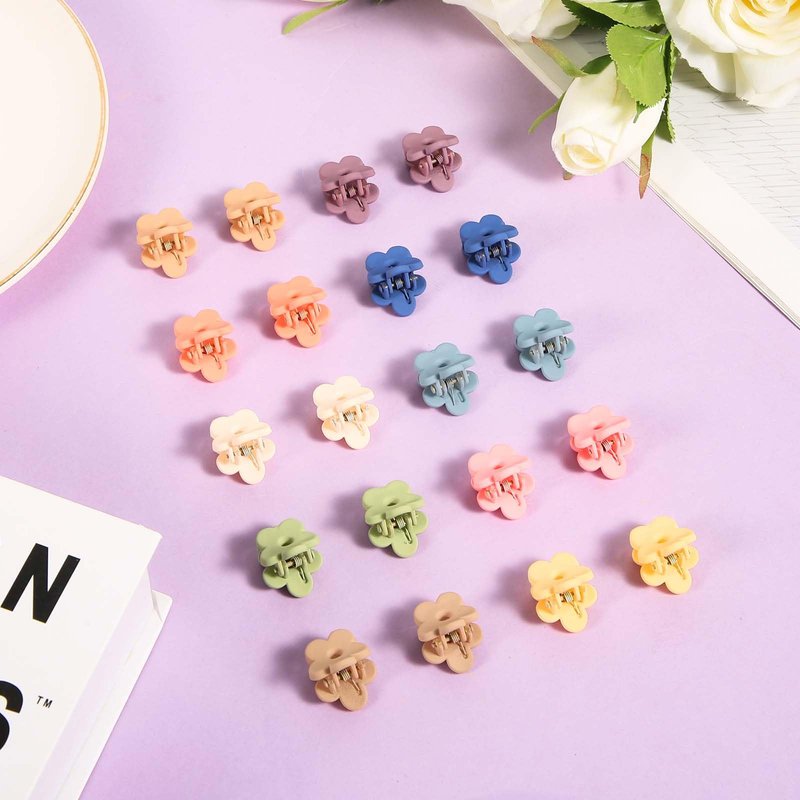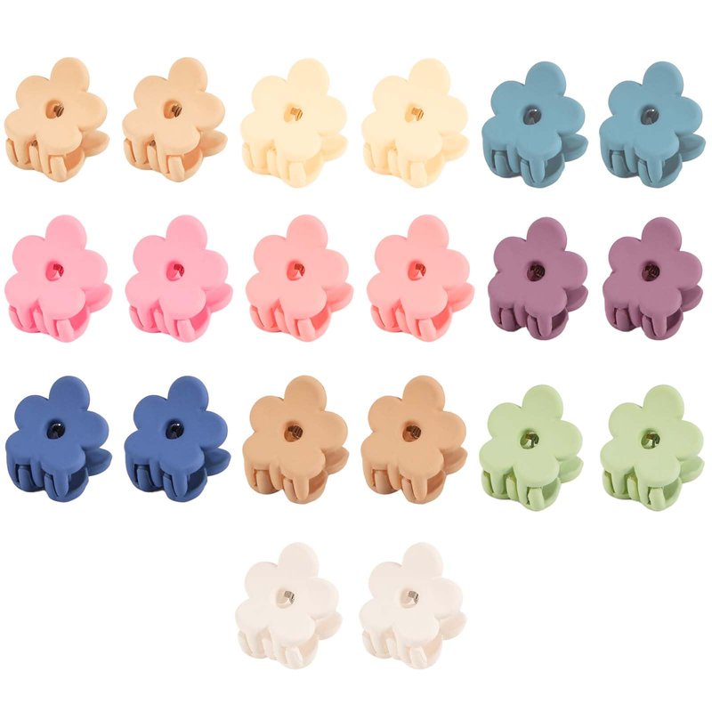20pcs Mini Flower Hair Clips for Girls, Cute Small Flower Claw Clips Tiny Hair Accessories for Baby Women Thin Thick Hair (10 Colors)