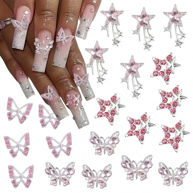 - -Star Butterfly Nail Charms: You will get 20pcs star butterfly nail rhinestones, Can add a strong fashion atmosphere. Perfect for women girls, exquisite nail design, DIY fashion nail decoration.
