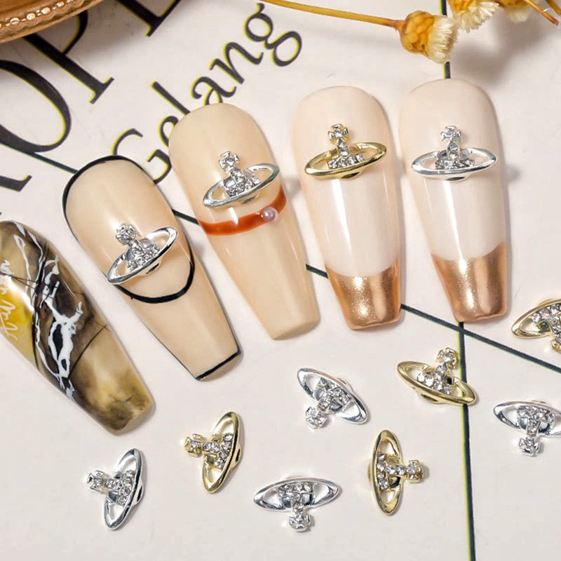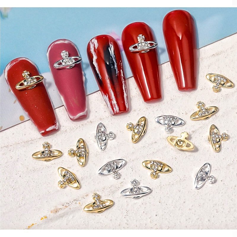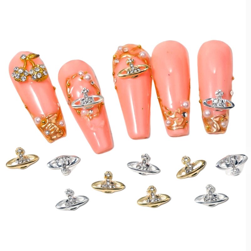 Shiny planet nail charms with stylish personalities.