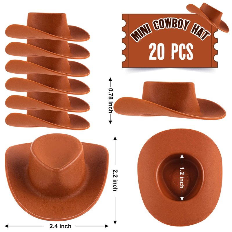 - 【MINI BUT CUTE】The plastic cowboy cowgirl hats are made in a 1:1 comparison to the real tiny cowboy hat, so it is very simulation. It's a mini real cowboy hat, looks super cute and beautiful when decorating anything you want.