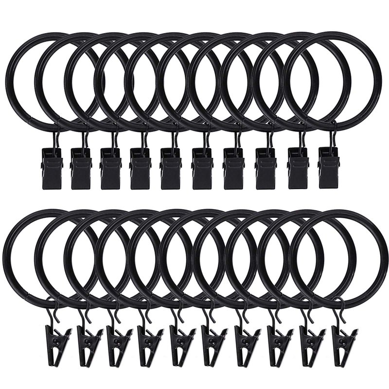 20Pcs Rustproof Drapery Matte Stainless Steel Metal Curtain Rings with Clips 1.5 inch Drapery Rings, Vintage Black (1.5" Interior Diameter)