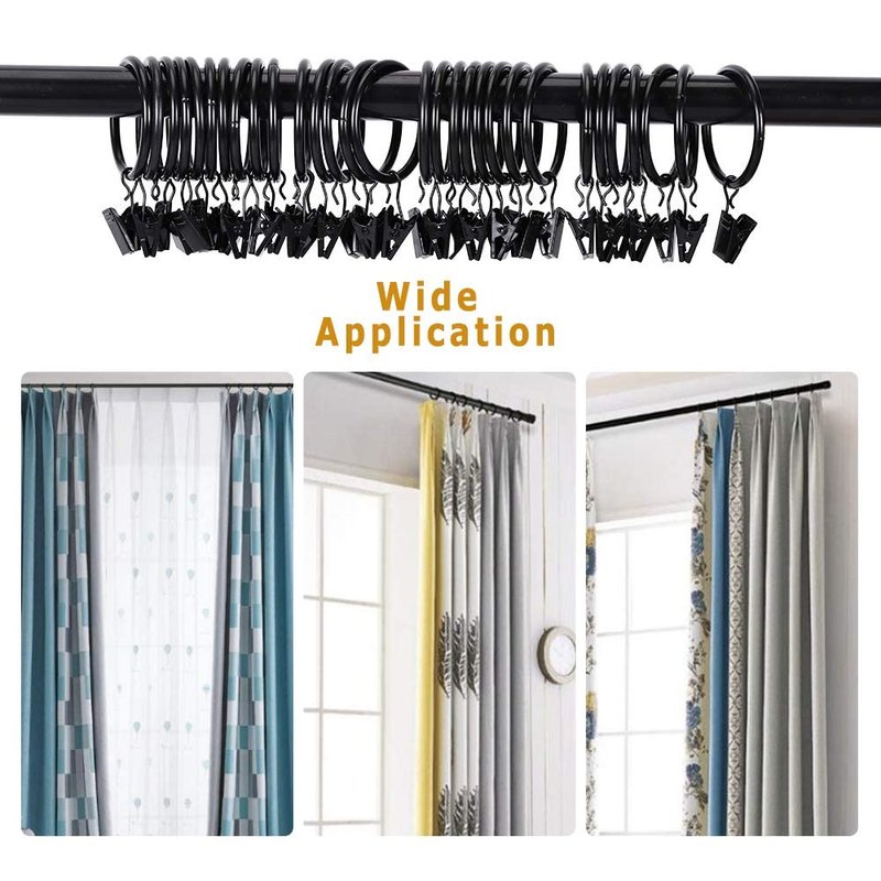 - QUANTITY - Set of 20 pcs, including eyelets and removable clips. Large clip rings for hanging curtains from a curtain rod.