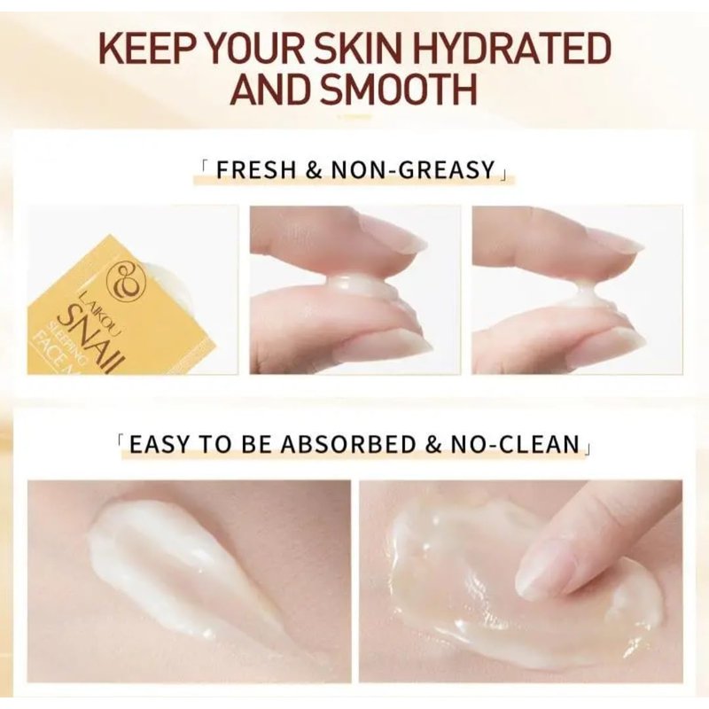 - Deep Hydration: Infused with snail essence, this sleeping mask provides deep hydration to your skin while you sleep.