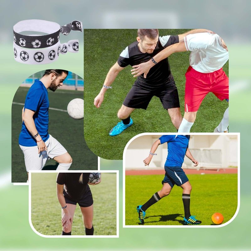 - 【Elastic】This soccer hair ties bracelet is made of elastic material, which can be stretched to 6.5 inches / 16.5 cm in length, can hold your hair well, suitable for daily and football sports wear.