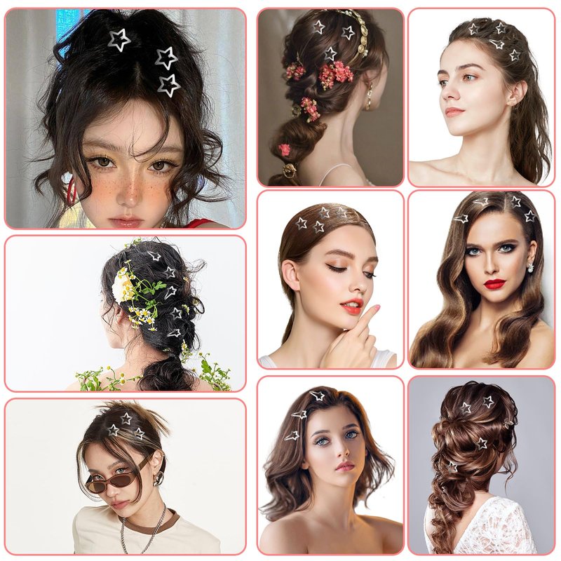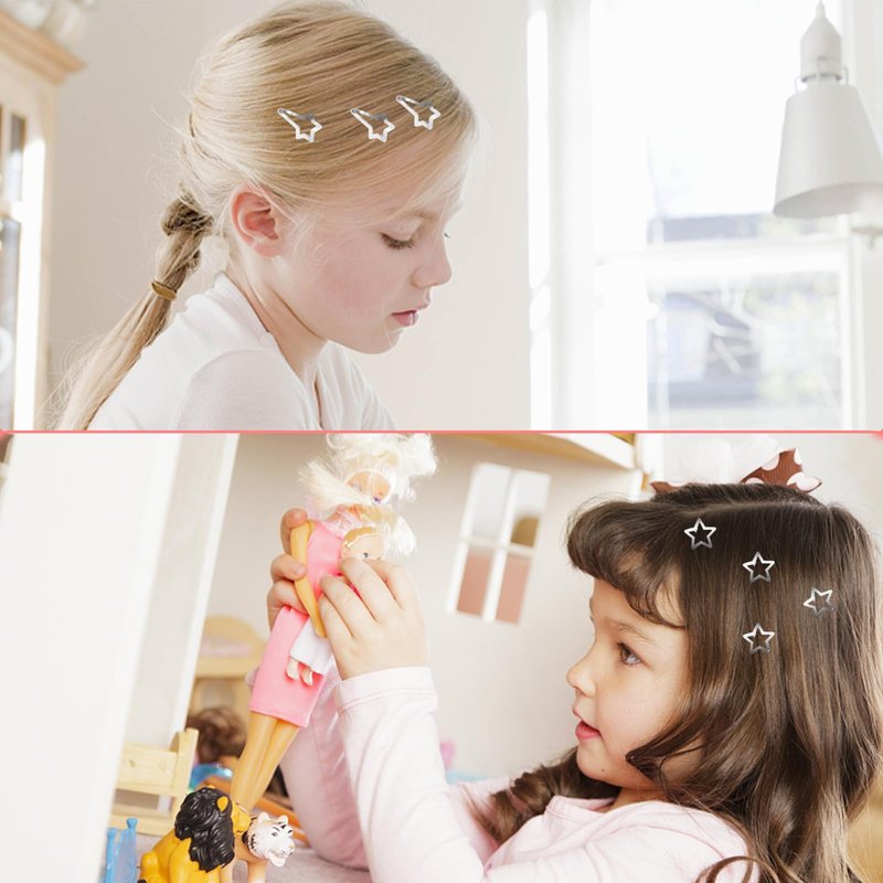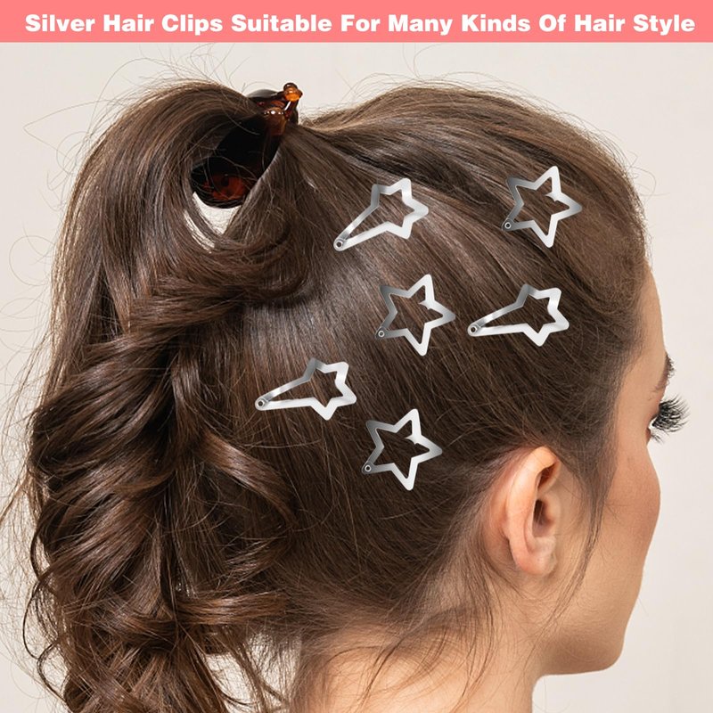 ----The silver hair clips adopt a star shape design, which is simple and fashionable, shiny and charming, especially suitable for creating a sweet look, making you look sweet and elegant.