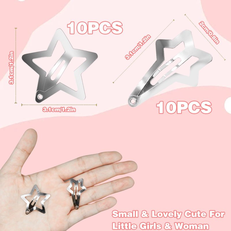 - 【Star Shape Design】The silver hair clips adopt a star shape design, which is simple and fashionable, shiny and charming, especially suitable for creating a sweet look, making you look sweet and elegant. these hair clips are great for accentuating your personality. These snap hair clips will become one of your great hair accessories.