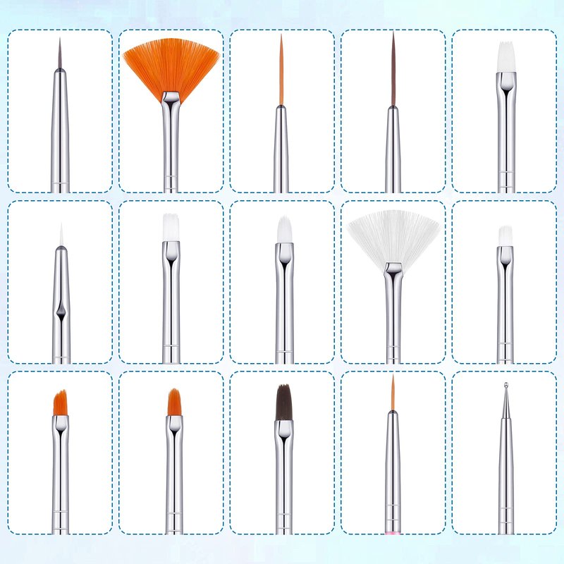 - nail design brushes pens set: there are a variety of nail design design brushes and pens for you, which cover most range of brushes you'll need, the nail design brushes sets are made of alloy, resin, acrylic and fiber wool, lightweight and easy to hold to use; Double-ended nail dotting pen features a large ball and a small ball for various size dotting