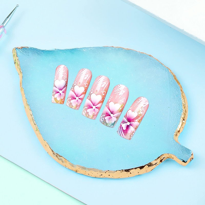 - nail design tools kit: this kit contains 1 piece leaf shape resin palette with golden edge, 15 pieces handle brushes, 5 pieces nail dotting pens, a convenient set for you to make your own nail design styles, suitable to hold many colors and pigments you want to mix, enough to meet your basic using needs