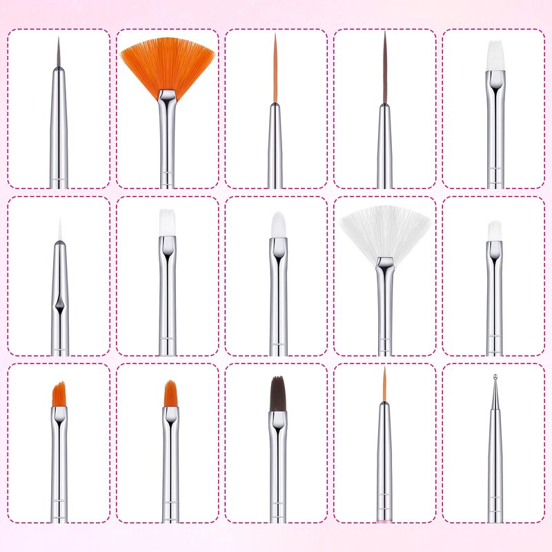 - nail design brushes pens set: there are a variety of nail design design brushes and pens for you, which cover most range of brushes you'll need, the nail design brushes sets are made of alloy, resin, acrylic and fiber wool, lightweight and easy to hold to use; Double-ended nail dotting pen features a large ball and a small ball for various size dotting