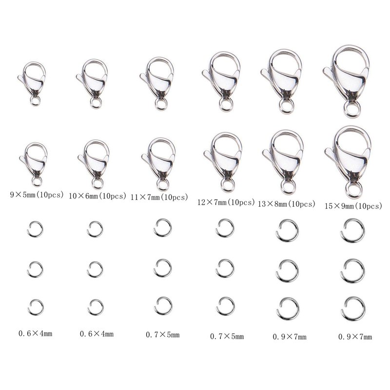 - lobster clasps have 6 size,jump rings have 3 size,These open jump rings and clasps set are suitable for many projects like many jewelry beadings making and repairing, making bracelets, repair necklaces, making chain mail, charms, anklets and other jewelry related projects
