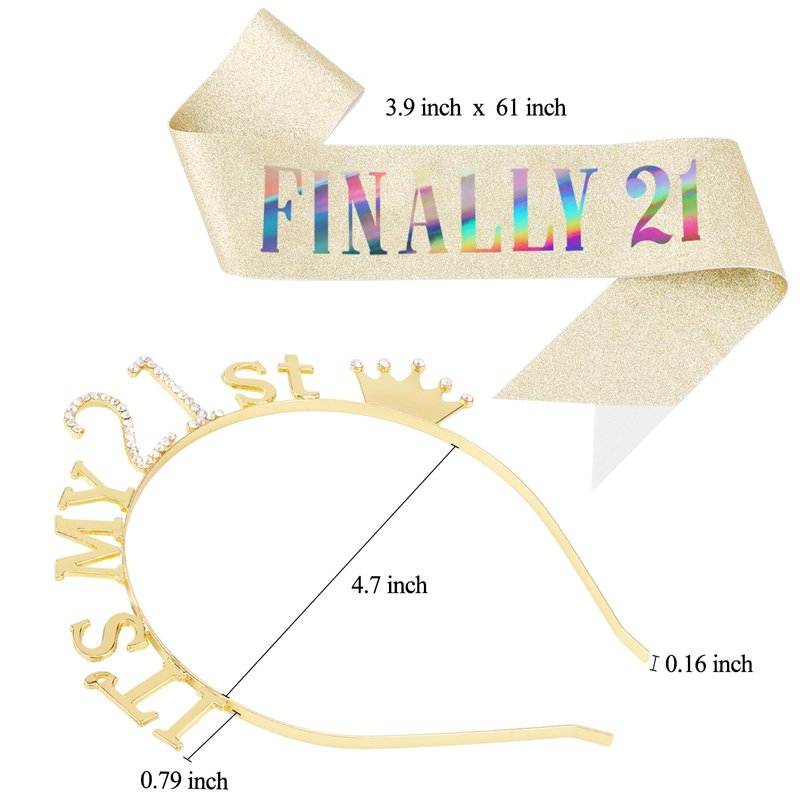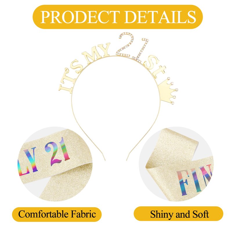- [Exquisite Design]: The curves of the hair bands fit our heads perfectly, making it easy and secure to wear. The smooth satin sash and dazzling “ITS MY 21TH” on the crown ensure you stand out at the birthday party. The little crown logo at the top makes it even cuter to wear.