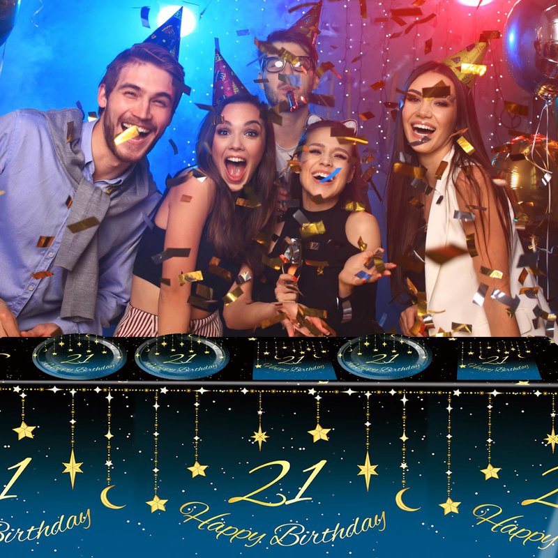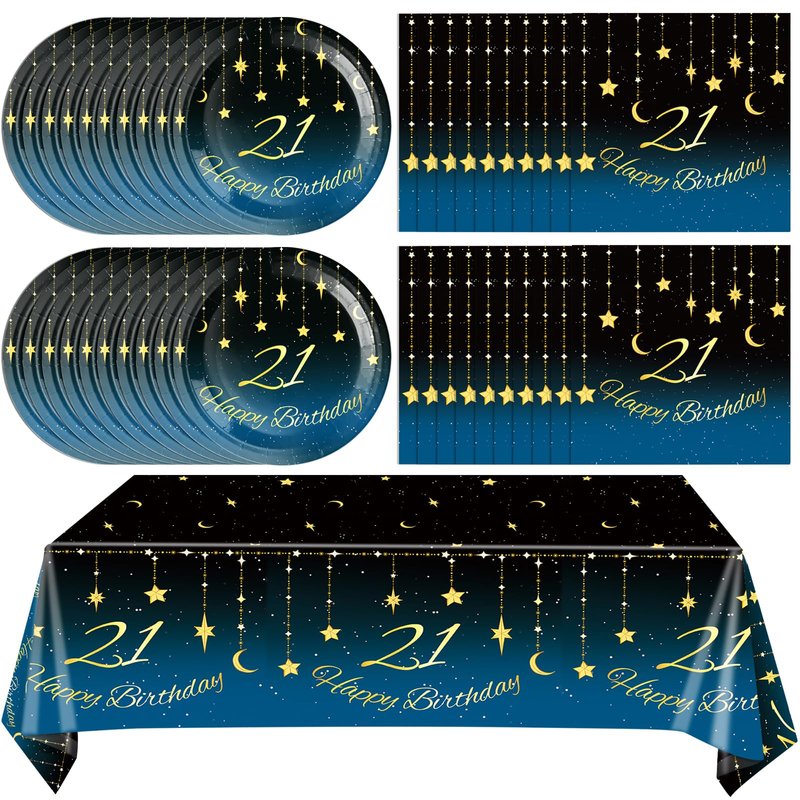 21th Birthday Party Decorations, 41Pcs Starry Sky Party Tableware Set Includes 20 Plate 20 Napkins and 1 Tablecloth, 21 Years Old Birthday Theme Party Supplies for Boys Girls Birthday Party Favors