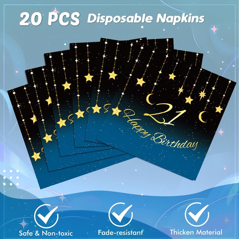 - 【Galaxy starry night design】these nebula tableware are printed with blue starry sky and “21th Happy Birthday”pattern, full of starry sky theme party atmosphere, which is clear and exquisite, and can match well with other party ornaments, making your home and party more beautiful and attractive, creating a dreamy starry sky atmosphere