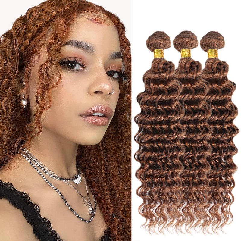 22 22 22 Inch Color #30 Bundles Auburn Deep Wave Human Hair Bundles 8A Brazilain Unprocessed Virgin Hair Color #30 Brown Deep Wave Bundles Auburn Bundles Human Hair Extension