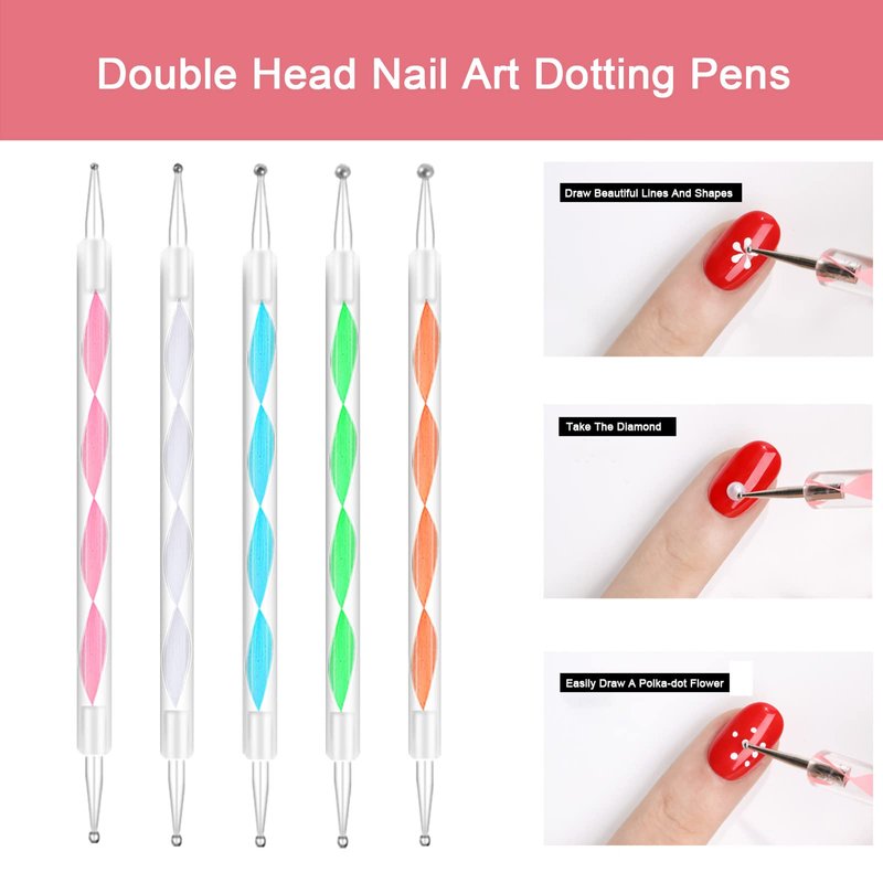 5 pcs dotting pens contain 5 metal balls and 5 flat brush heads.
