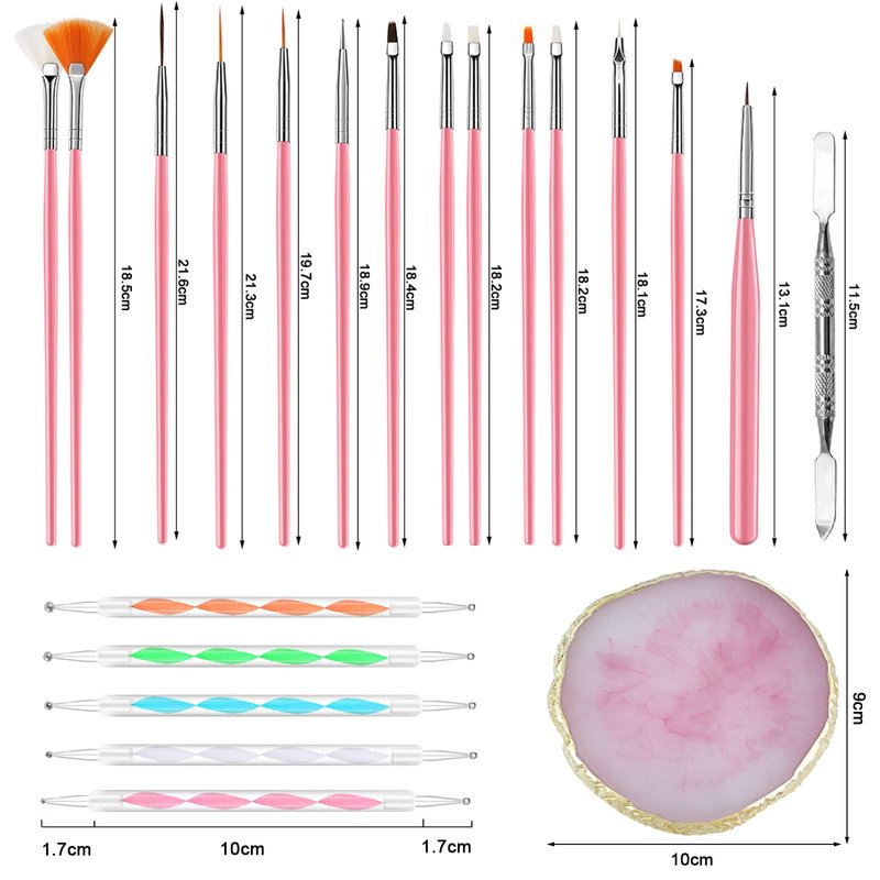 22 Pcs Nail Art Brushes Set, 1 Pcs Resin Nail Art Palette, 15 Pcs Nail Art Brushes, 5 Pcs Nail Art Dotting Pens, 1 Pcs Cosmetic Makeup Spatula Stirring Rod, Nail Design Tools for Nail Art Home Salon