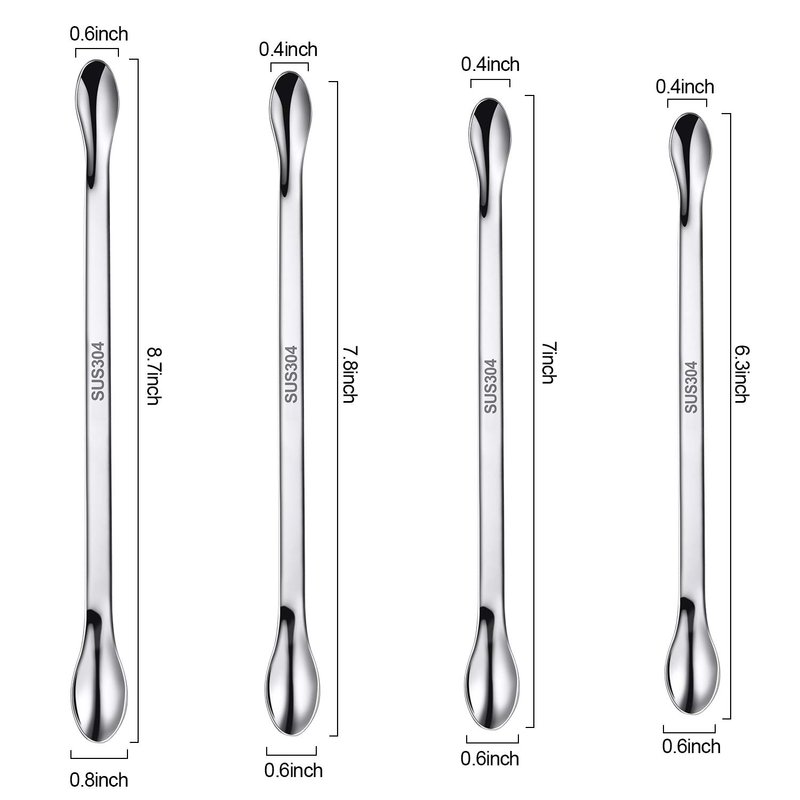 Lab spatula micro scoop set features long handle for taking materials out of deep bottles and cans, suitable for bar, home, science, party use. A must have tool for mixing drinks, ideal for deep cups.