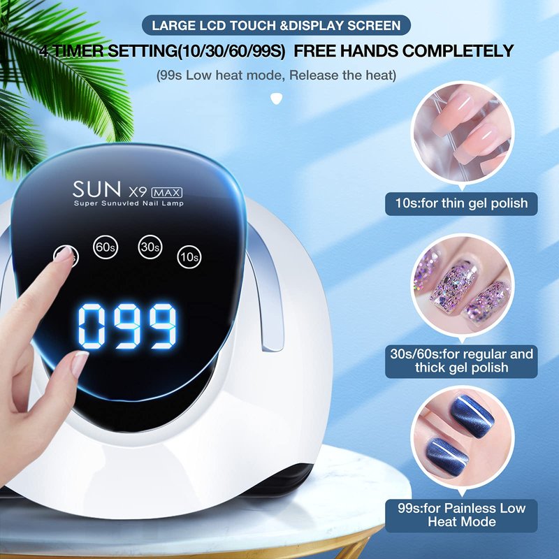 - ★【Large Digital LCD Touch Display Screen and 4 Timer Setting】 4 timer setting(10/30/60/99S) can show your usage time on large Digital LCD screen,makes your curing process more visible.Flexible Drying Options with 4 timer setting, the power between 220W(10/30/60S)-72W(99S) can follow your different gel polish's requirements.Ideal for both home and salon use.