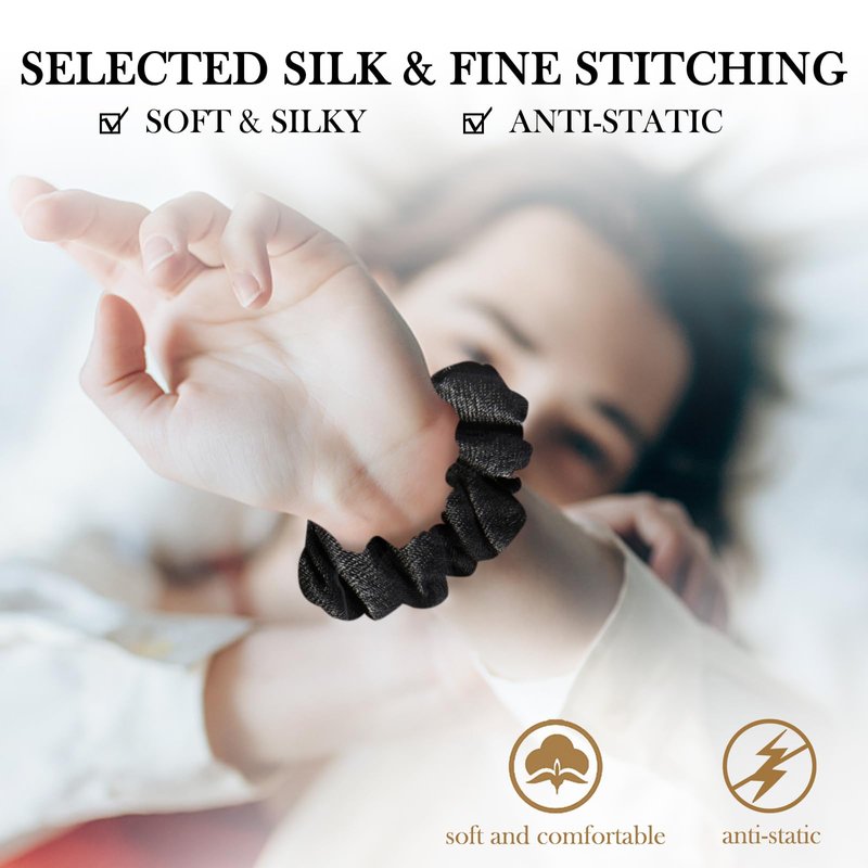- 2.Silk scrunchie comfortable to wear all day long - hair ties no more scalp pain caused by tightness good effect of anti-static not tangled hair thus reducing hair fall