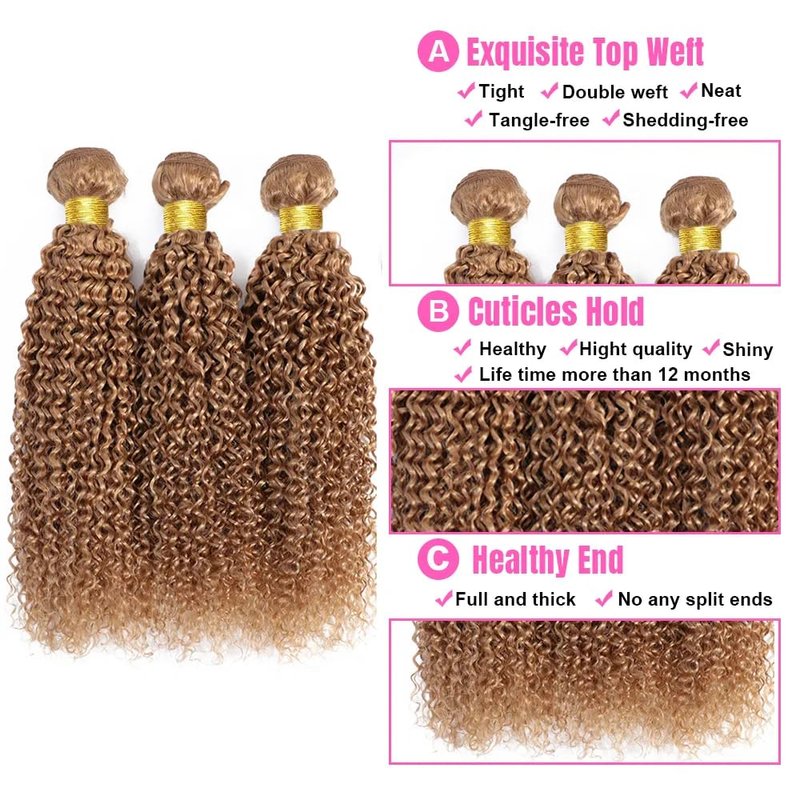 - Honey Blonde Hair Bundles: Color 27 Bundles, Honey Blonde Kinky Curly Bundles Human Hair Weave,Shiny And Beautiful