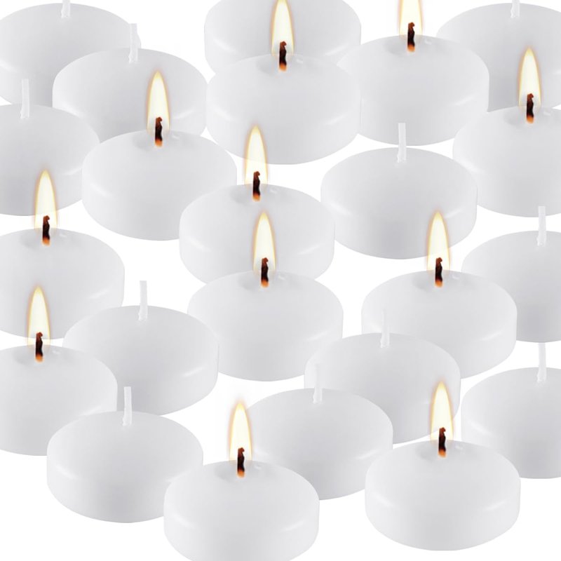 - Burn Time: Typically a 2.0 inch white floating candle will provide approximately 4 hours of warm ambient light.