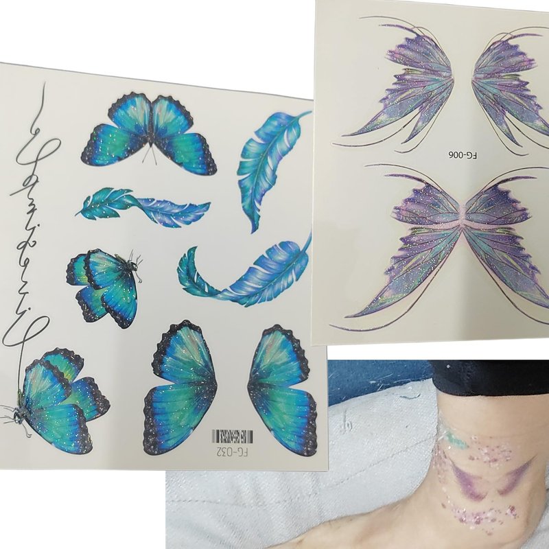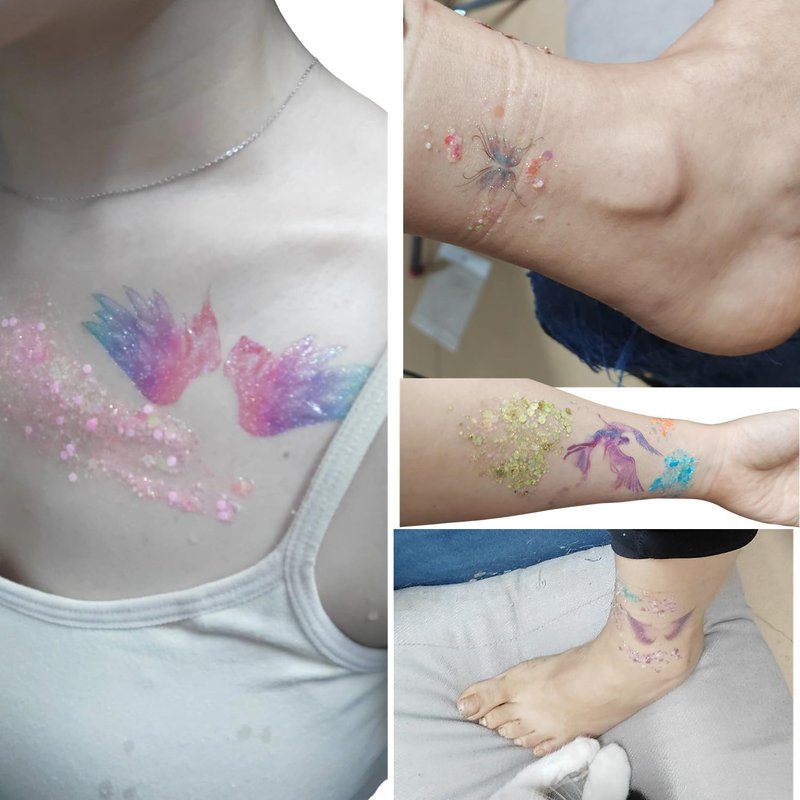 - 【WATERPROOF DURABILITY】 The temporary tattoo can last 3-7 days even in water if you don't remove it. Note: sensitive skin or children under 3 years old we do not suggest use the glitter gel or temporary tattoo