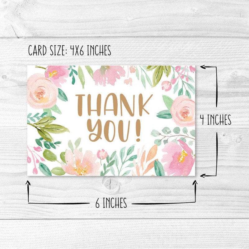 24 Floral Thank You Cards With Envelopes Bulk - Housewarming Thank You Cards Wedding Thank You Cards With Envelopes Kids, Baby Shower Thank You Cards Graduation Thank You Notes With Envelopes Set